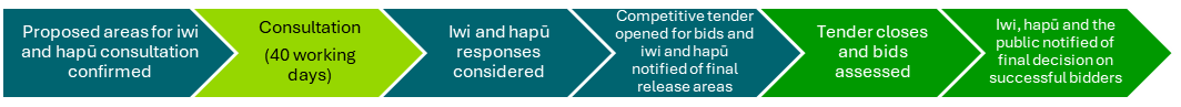 - Competitive tender opened for bids and iwi and hapū notified of final release areas